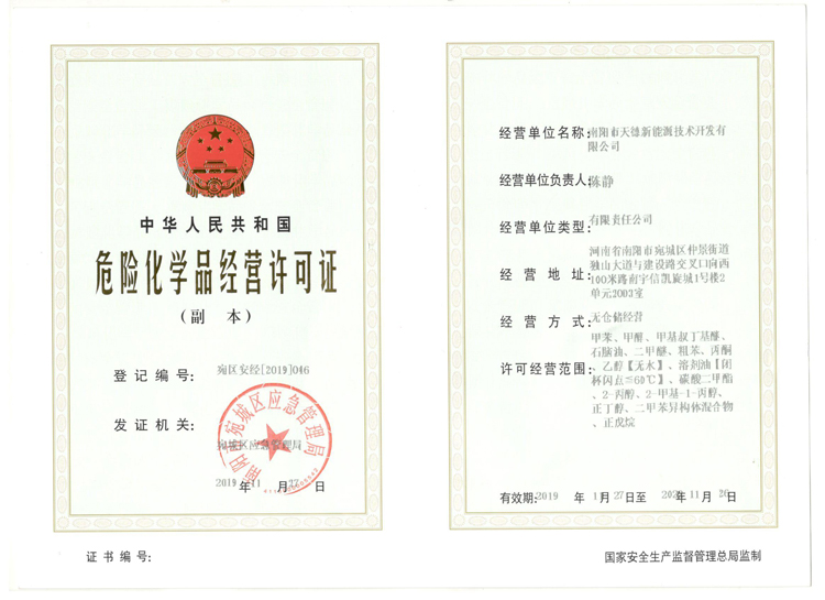 天德危險(xiǎn)品許可證